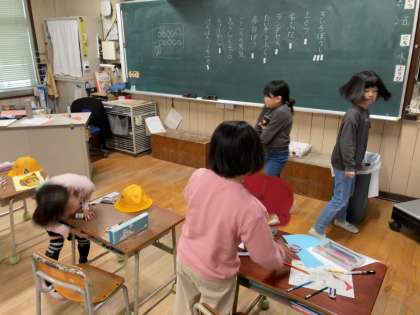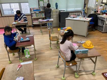 廊下の壁面掲示を作成していました。それぞれが作りたいものを希望し、取りかかっていました。とっても暖かい壁面掲示ができあがっていました。