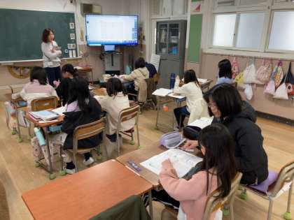 「直方体と立方体」の学習をしています。今日は展開図から組み立てた時に重なる変や点について考えていました。実際に組み立てながら平面上でもイメージが掴めるようになっていきましょう。