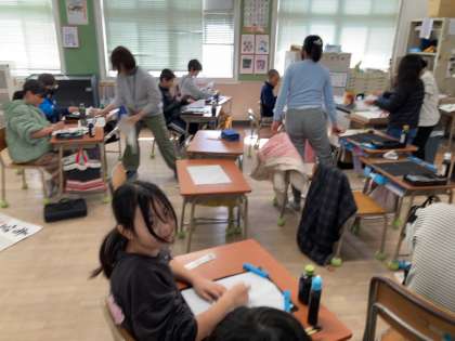 今日は「希望」の文字の練習をしていました。バランスが難しい2文字ですが、みんな上手に書いていました。今までの練習の成果が出ていますね。