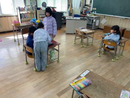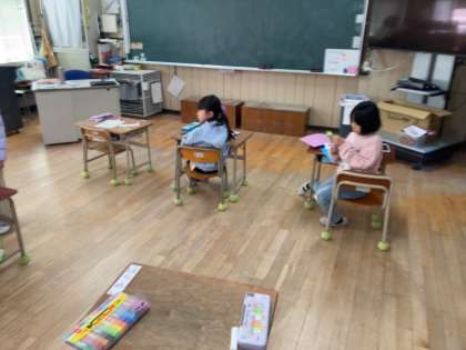 「1年かんのおもいでブック」の単元に取り組んでいます。色ペンや色画用紙を使い思い出ブック作りをおこなっていました。