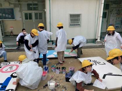 雨で延期になっていた奉仕活動の続きをおこなっていました。今日は前回下地を塗った縄跳び練習板にペンキで絵を描いていました。楽しく跳べそうな作品ができあがりそうです。