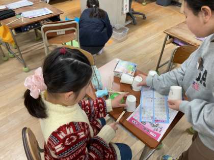 3年生の最後の単元として理科の授業で学んだことを活かしたおもちゃ作りに取り組んでいました。