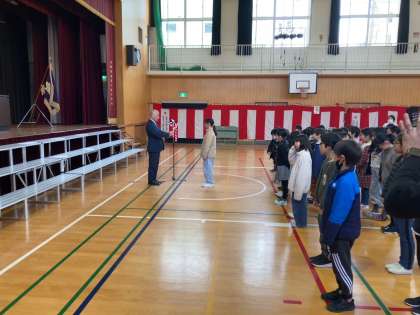 校長先生からは代表の児童に修了証が渡され、1年間の自分の頑張りについて話がありました。