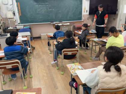 「わたしたちの住む大阪府」ということで4年生は学習を進めていきますが、まず始めに自分たちが住んでいる国、「日本」の様子について学んでいました。まわりの海の名前や、それぞれの島の名前について意見を出し合いながら取り組んでいっています。
