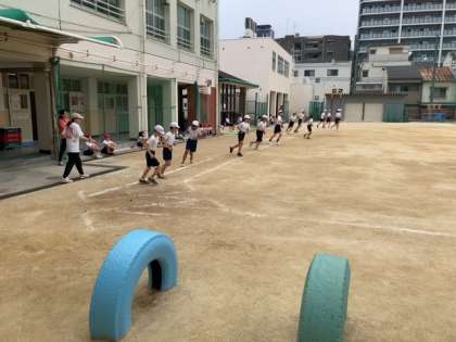 新体力テストの実施項目である「シャトルラン」に取り組んでいました。新体力テストは5月になってから実施期間を設けて行いますが、気温の上昇も懸念されるため本日実施していました。
