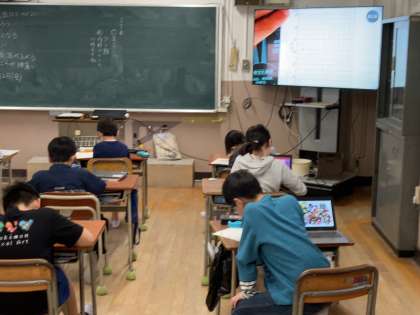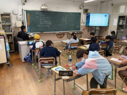 「天気と1日の気温」の単元で、今日は事前に調べていた1時間ごとの気温を折れ線グラフにしていました。