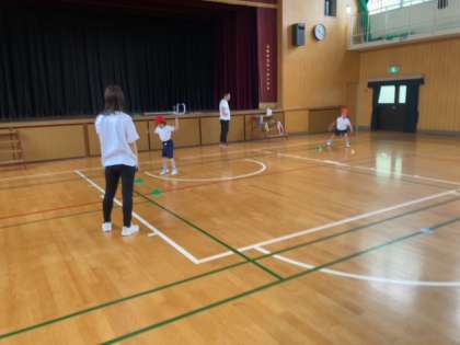 新体力テスト週間の最終日になり、反復横跳びの測定をしていました。初体験の1年生にとっては戸惑うこともあったと思いますが、みんな笑顔で取り組んでいる様子が見られました。