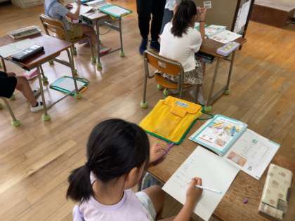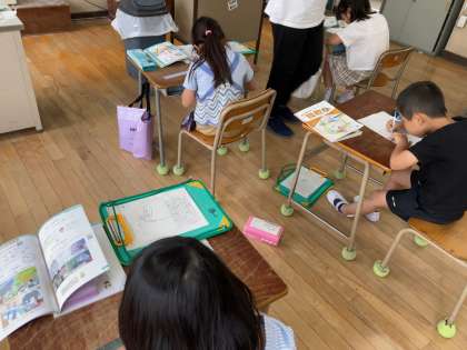 今日はものさしを使い指示された長さを実際に書く練習をしていました。「かんたん、かんたん」と言いながらも慎重に丁寧に取り組んでいました。