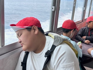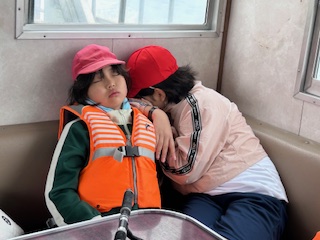 船に揺られて気持ちよくなったのか、寝ている子もいます