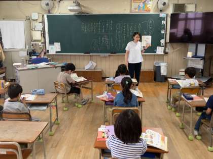 「あいさつのあるいちにち」という教科書教材を使い、あいさつの大切さについて考えていました。あいさつのロールプレイングでも気持ちのあいさつができていました。