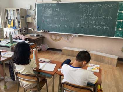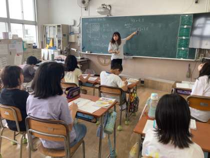 結合法則、分配法則を使った小数の計算をしています。この法則自体は4年生で学習していますが、なかなか使いこなすのは難しいです。図を使って確認しながら学習を進めていました。