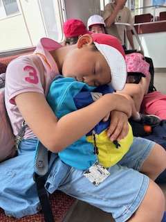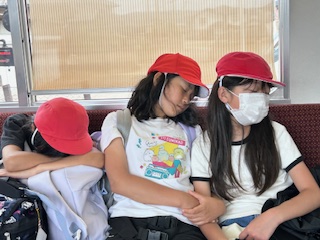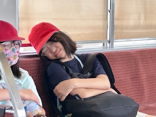 電車の揺れが気持ちいいのか、疲れて寝てしまっている子もいます。