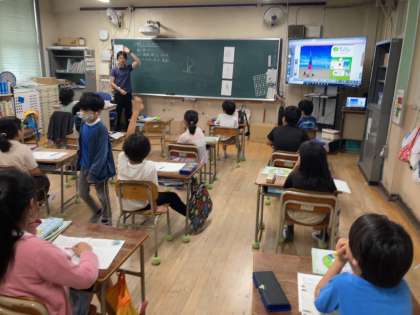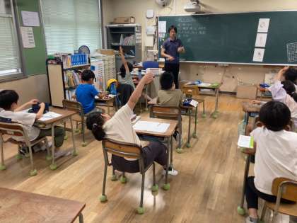 「風とゴムの力のはたらき」の単元の導入で、風の力で動くものを発表していました。