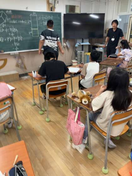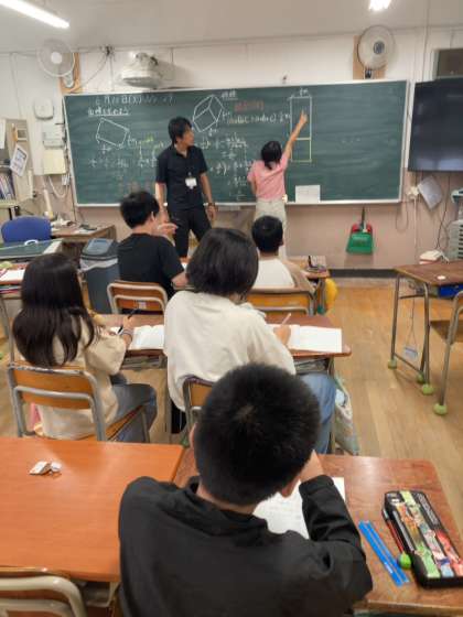 長方形の面積や直方体の体積を求めていますが、すべての辺の長さが分数になっています。面積や体積の求め方、交換法則や結合法則などすでに習っているところですが分数になると、違うように見えてしまいわからなくなってしまうことがよくあります。