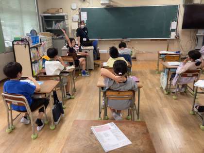 「体のせいけつとけんこう」の単元で体をせいけつにしておくことの意味について考えていました。みんな元気いっぱい手をあげて発言している様子が見られました。