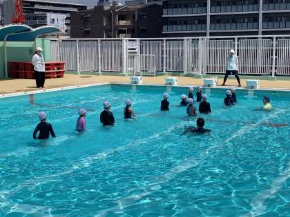 昨日に引き続き絶好のプール日和で子どもたちは笑顔で水慣れに取り組んでいました。この夏でできることをたくさん増やしてくださいね。