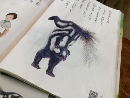 「ヤマアラシ」「アルマジロ」と学習を進め今日は「スカンク」の身の守り方です。どんな風に身を守っているのでしょうか。