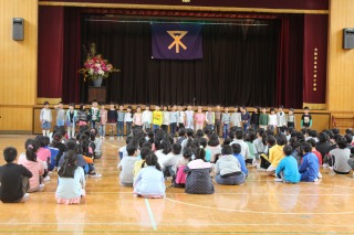 新しい先生の紹介に、子どもたちは目を輝かせていました。