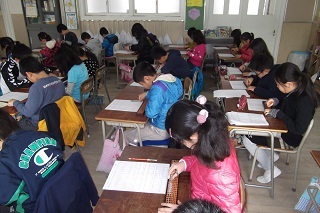 今年も珠算教室の先生をゲストティーチャーに招いて、そろばんの使い方を教えて頂きました。4年生は、2回目の体験なので、基本的なたし算や引き算の方法に加えて、繰り上がり・繰り下がりの仕方も学び、最後は、桁数の多い見取算・読上算などにも挑戦しました。