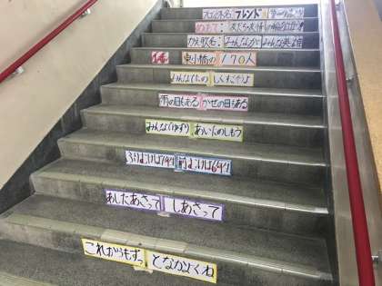 みんなで歌えたらいいな、と階段にも掲示しました。5年生の子どもたちの気持ちが伝わるような、とっても優しく素敵な歌詞です!みなさんも学校に来られた際には、注目してみてください。