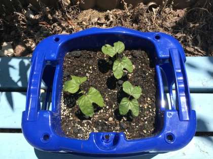 アサガオの芽が出ました!上の写真は、5月19日(金)、下の写真は26日(金)です。1週間での変化です。1年生の子どもたちが毎朝、お水やりを頑張っているので、アサガオはぐんぐん成長しています。