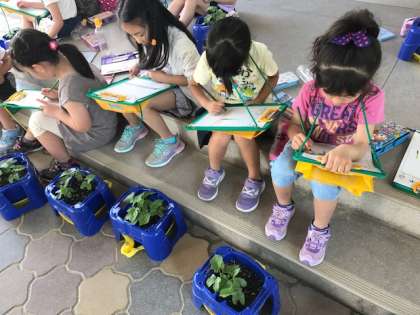 5月29日(月)、観察をしました。ふたばと本葉の違いを、手で触って確かめながら、絵に描きました。「ほんばは、ふわふわしてる!」「ふたばはつるつるだけど、ほんばはざらざら!」と違いにも気がつきました。