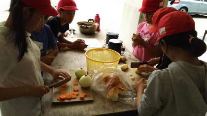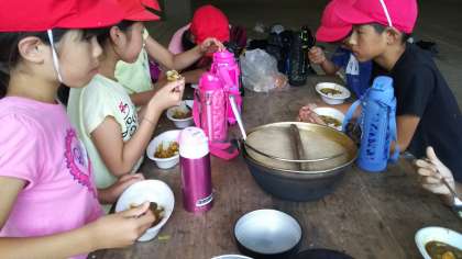 野外炊飯は、カレーづくりです。