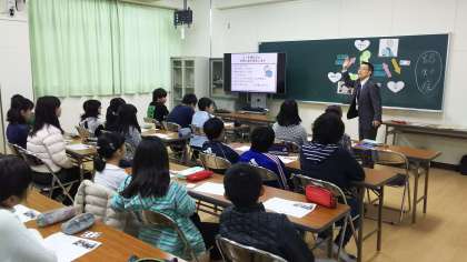 11月29日(水)5〜6時限目に、6年生が道徳の授業で、高齢者福祉の認知症について学習しました。先週に引き続き、森ノ宮医療大学の福島信也教授に来ていただきました。6年生の感想をまとめた「どうとく通信」やいろいろな資料を見ながら、話し合いをしました。