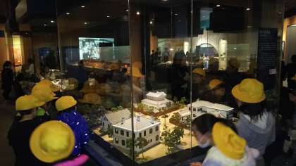 くらしの今昔館では、昔の町並みが再現されていたり、昔の道具や持ち物がたくさん展示されていました。