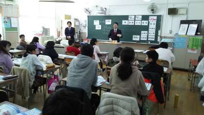 1月18日(木曜日)3時間目に税務署や税理士、行政書士の方々に来ていただき、税金の学習をしました。アニメやお金の札束を使いながら、分かりやすく教えていただきました。