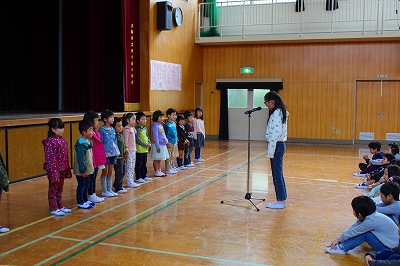 新しい校長先生と朝の挨拶をして、新しい先生とご挨拶をしました。