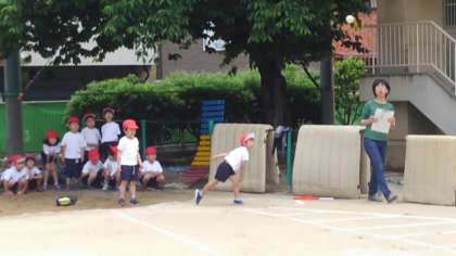 スポーツテスト—1年生ソフトボール投げ