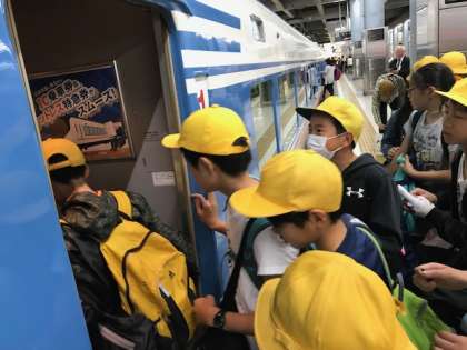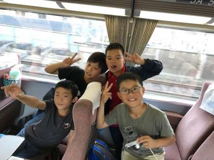 出発式では、お見送りありがとうございました。子どもたちは、無事に上本町に着き、あおぞら号に乗車しました!