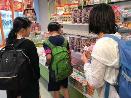 「これはお母さんの分!あと弟には何がいいかな?」「自分にはお茶漬けを買った!」と話しています。家族へのお土産を考えるのも楽しそうです。