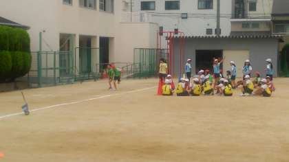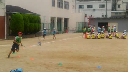11日(月)4時間目体育でリレーの学習をしました。前回測ったタイムよりも速くなるように、グループで走順やバトンパスを工夫しました。バトンパスの練習では、次の走者はどのあたりから走り始めるとスピードを落とさずバトンパスができるのか、グループでアドバイスし合いながら取り組んでいました。学習の最後の計測では、ほとんどのチームが前回よりもタイムを縮めることができました。しかし、子どもたちはまだまだ工夫ができると話しています。これから練習を重ねていくのが楽しみです。