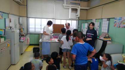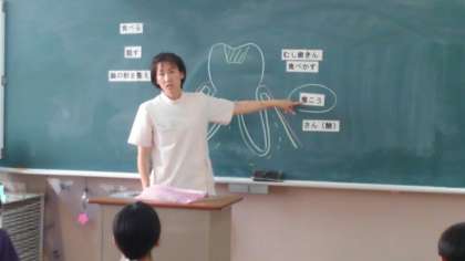 「正しい歯のみがき方」について教えていただきました。一本一本ていねいに鏡を見ながらみがきました。毎日、続けてむし歯にならないようにしよう!