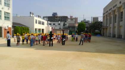 今日の集会では、災害時の保護者への引き渡しをする際の並び方を練習しました。日曜参観の時に実施しますので、保護者の皆様よろしくお願いいたします。