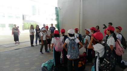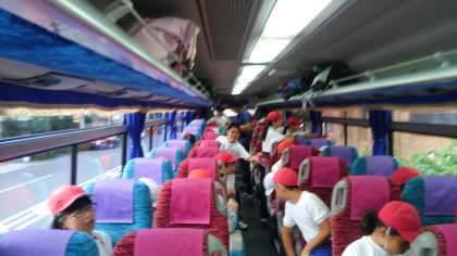 出発式をして、いよいよバスで出発です。みんな元気です。すばらしい林間学習になりますように!