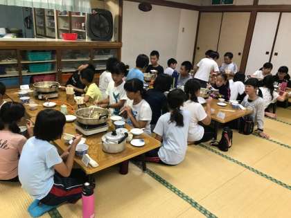 たくさん歩いて、おふろに入り、おなかがぺこぺこだったようです。