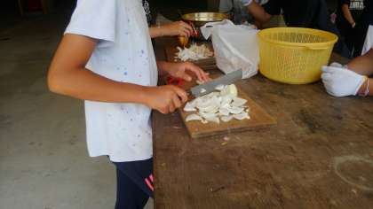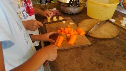焼き板の完成は明日にして、今から昼食のカレーライスづくりを始めます。