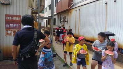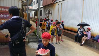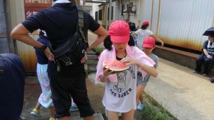 宿舎に帰って、つるやさんがスイカを用意してくれました。甘く美味しかったです。