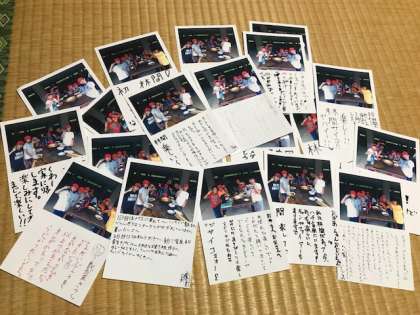 また今日は、林間学習で楽しかったことをはがきに書いています。おうちの人へのメッセージが添えてあるはがきもありました。