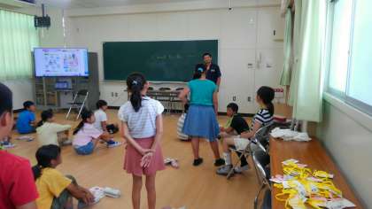 ・夏休みにどこに行ったかを英語で話したり、チャンツやゲームをしたりしました。