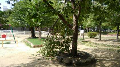 児童が放課後に遊んでいた東小橋公園は、木が倒れたり、枝が折れたりしていました。