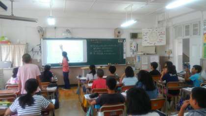電子黒板を使って、図形の合同と拡大図、縮図について学習していました。マス目を数えたり、分度器を使って、それぞれの角の大きさを測ったりしていきながら、形が等しい図形を見つけていました。しっかりと理解を深めていってほしいですね。