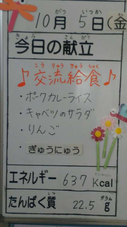10月5日(金曜)の給食