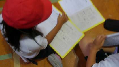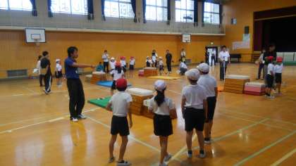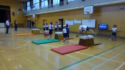 3年生体育の授業で研究授業がありました。タブレットを使って、お互いの跳び方を動画比較して、上手く跳べるにはどうすれば良いのかを考えていました。