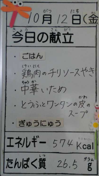 10月12日(金曜)の給食