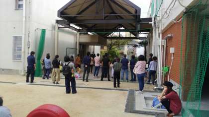 マグニチュード8の大地震が起こったことを想定し、子どもたちを引き取り者の方々へ確実に引き渡すための訓練です。