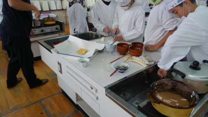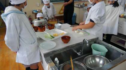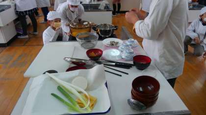 家庭科の実習で、「ごはんとみそしる」を作りました。